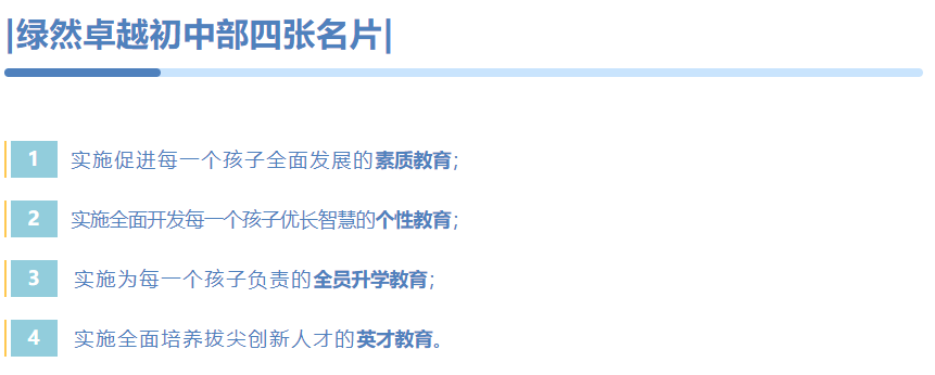 初中,是人生最关键的一步!这一阶段发展的优劣直接决定孩子一生发展的成败和高度。初中输不得,初中输不起,必须决战初中,必须决胜初中。为此,绿然初中教育人以崇高的责任感和使命感探索初中教育规律,努力办最好的初中教育。