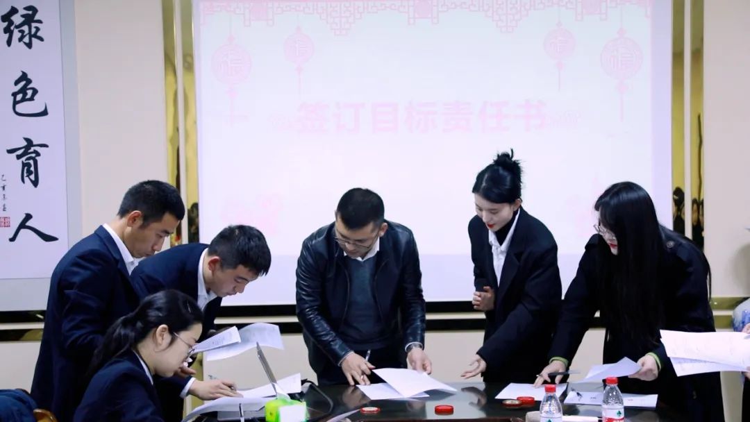 张正华主任明确目标分解及班级目标认定初三年级主任张正华从安全、质量与稳定等方面给初三年级各班班导及学科教师下达了具体目标,并与张鹏程校长共同签订了中考目标责任书鼓舞斗志。