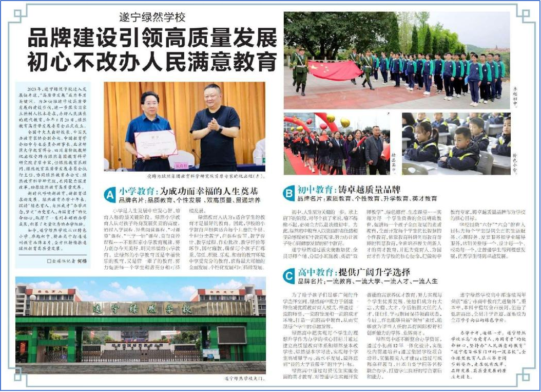 这一年,遂宁绿然不断将绿然教育优质办学成果推向全省、走向全国。对遂宁绿然学校优秀文化沉淀进行体系化建设,落实品牌战略工程,通过文化内涵引领学校高品位发展。