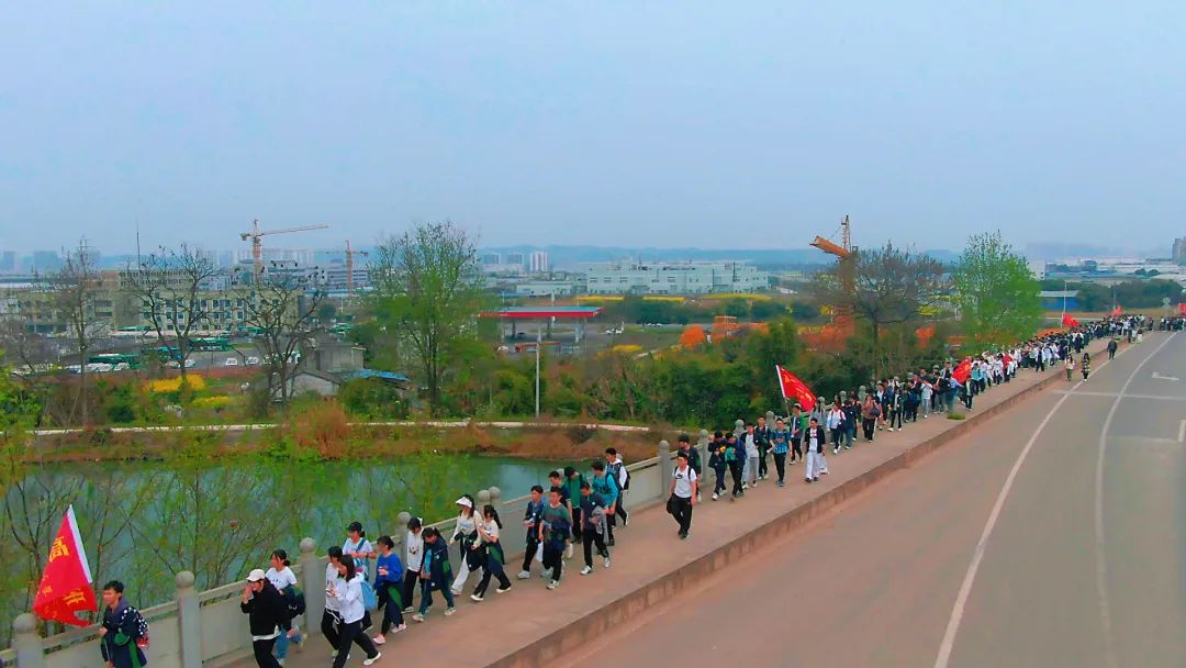 阳春三月,岁在甲辰。会于绿然学校之操场,远足拉练事也。师生毕至,少长咸集。高中部瞿毅校长一声令下,摩肩接踵,整装待发。